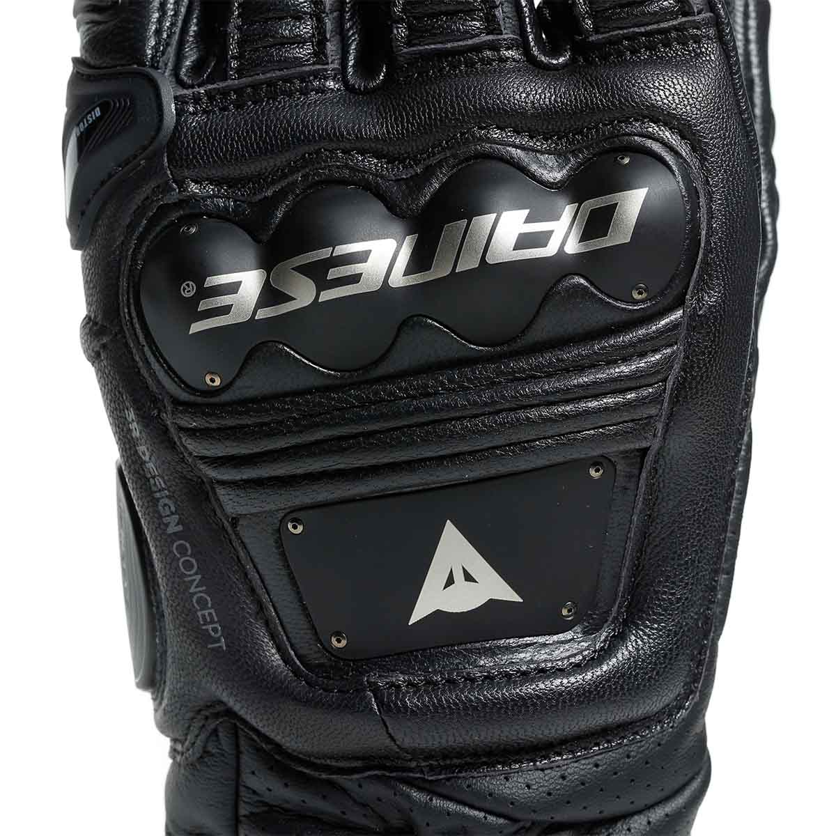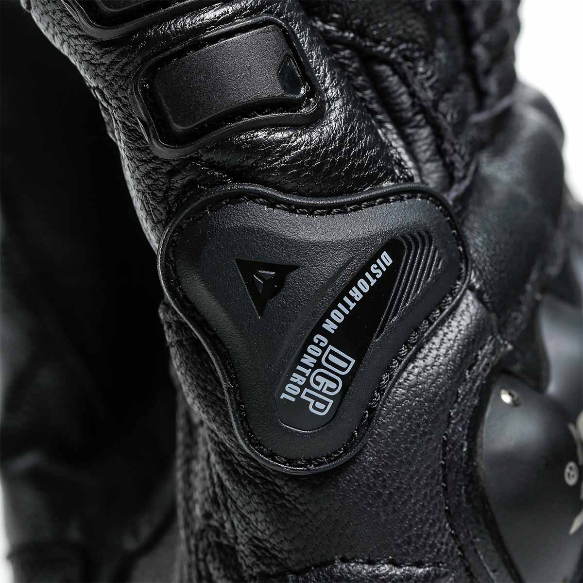 The 4 Stroke Glove acquires the composite stainless steel, TPR inserts, external little finger reinforcements, thermoplastic resin inserts and Dainese's Distortion Control System, offering increased mobility and protection on the wrist, knuckle and side of the finger.
