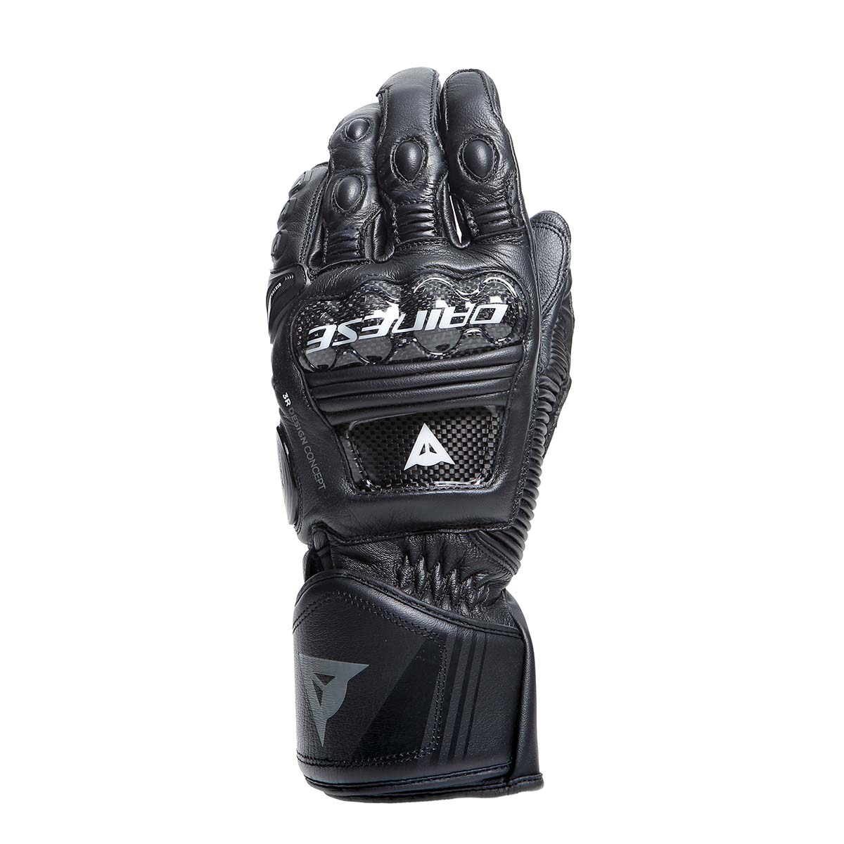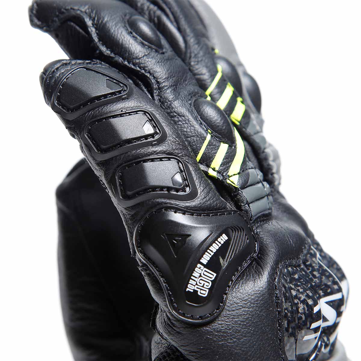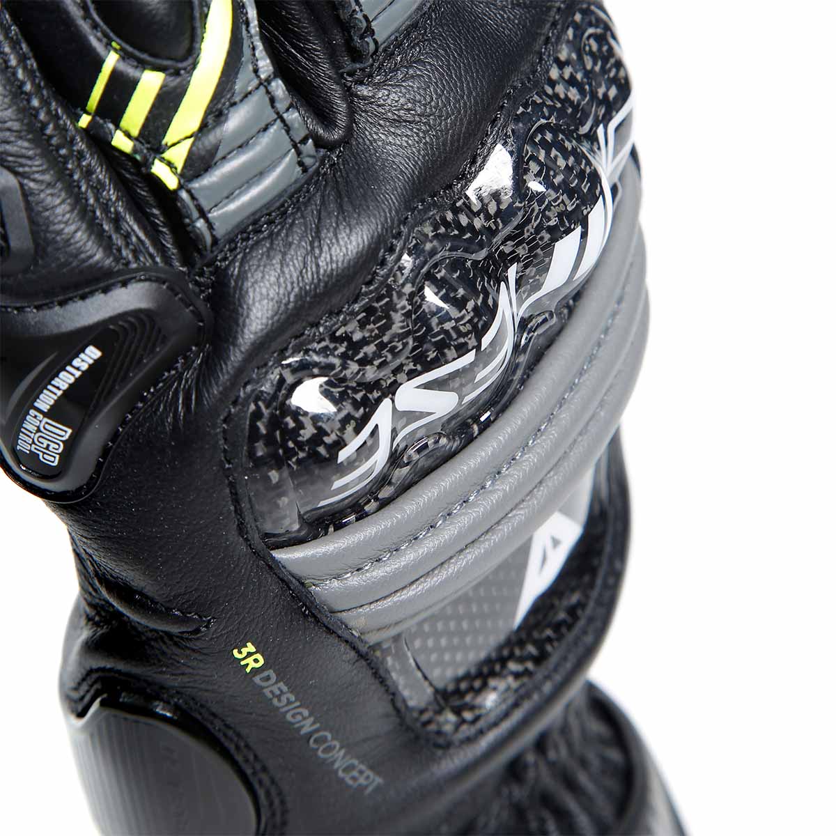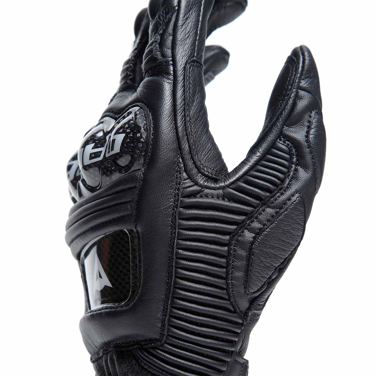 The Dainese Druid 4 leather racing gloves are an expression of the highest protection standards, designed for maximum performance on the track and the road. World Championship safety and ergonomics are guaranteed by the presence of the pre-curved and thermoformed sleeve, the carbon inserts on the knuckles and back, and the thermoplastic protector on the little finger.