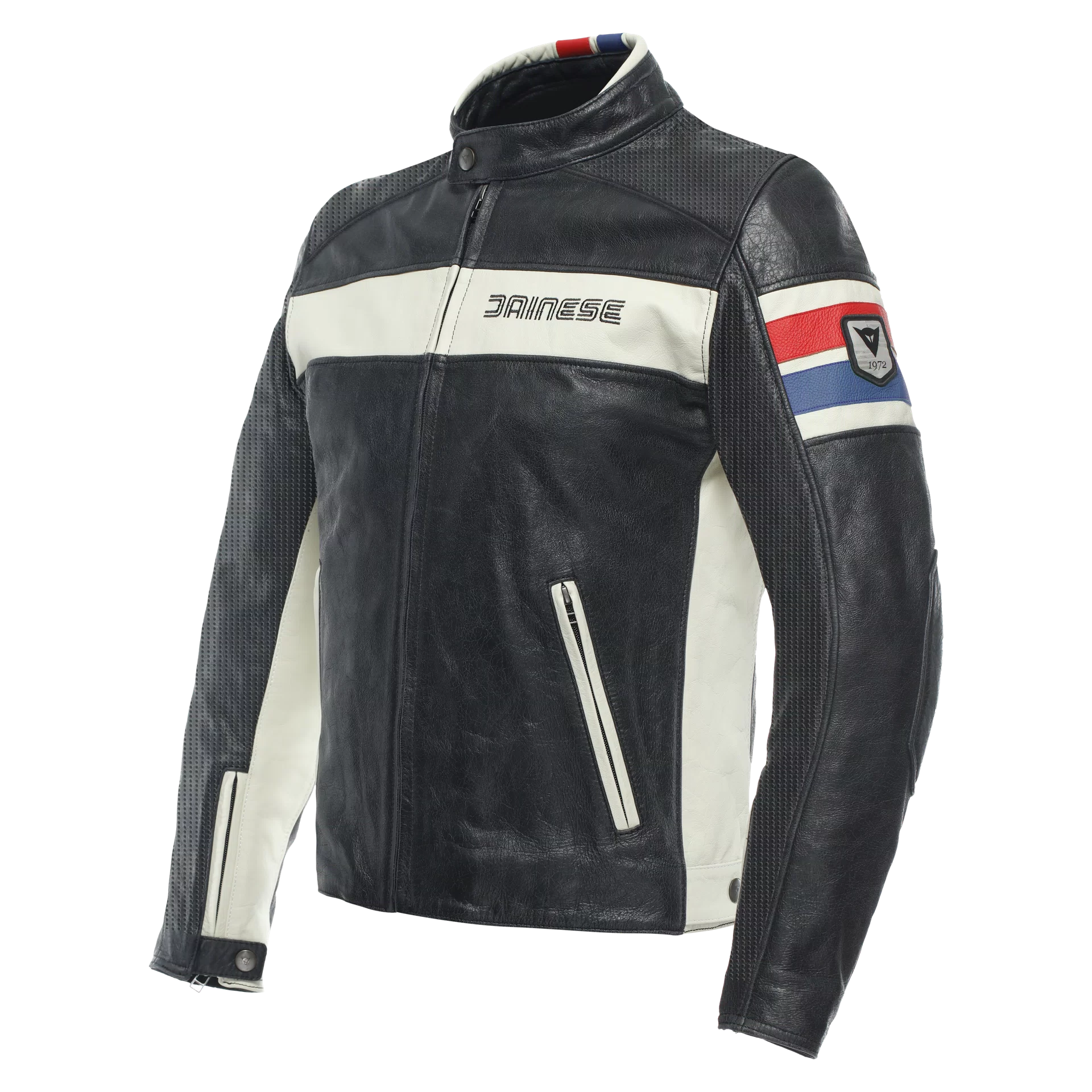 HF D1 is the motorcycle jacket made of fine soft perforated top-grain cowhide, with cotton lining with CE certification. This jacket boasts a classic cut that perfectly embodies Dainese’s legendary heritage – the ideal compromise between protection, comfort and vintage style. In fact, its cowhide construction is not only distinguished by a refined texture but also integrates modern features that guarantee maximum safety and comfort when in the saddle, such as removable soft Pro-Armor protectors on shoulders and elbows. Ideal for motorcycle outings even in the hottest season owing to its localized perforation that ensures excellent ventilation and thermal comfort.
