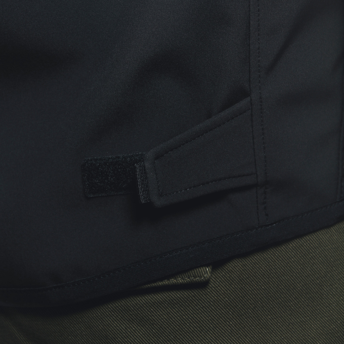 The jacket-pants fastening system guarantees comfort and ergonomics, ensuring the ideal fit on both pieces in any situation. The ergonomics of the jacket are also optimized by the fit adjustment system at the waist and cuffs.