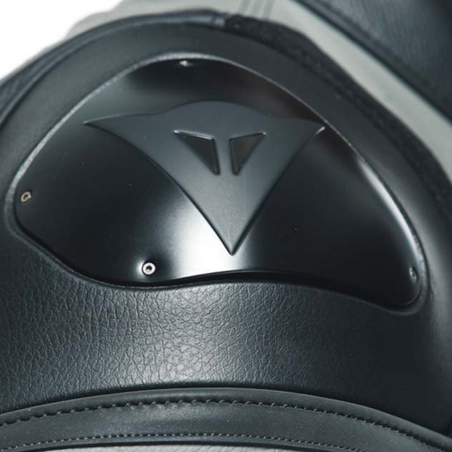 The Dainese Racing 4 motorcycle jacket is equipped with a zipper at the hem, which allows it to be connected to motorcycle pants, and EN 1621.1-certified composite protectors at the elbows and shoulders, which are further protected by interchangeable external aluminum plates – a distinctive Dainese technology – designed to support and facilitate sliding in case of a fall, thus avoiding the dangerous risks of rolling on asphalt.