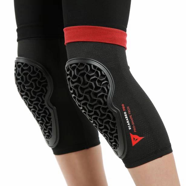 The Dainese Scarabeo knee guard is constructed around the Pro-Shape protector, inspired by the geometry of auxetic materials present in nature that, following an impact or stress, expand in all directions simultaneously, increasing the area of coverage.